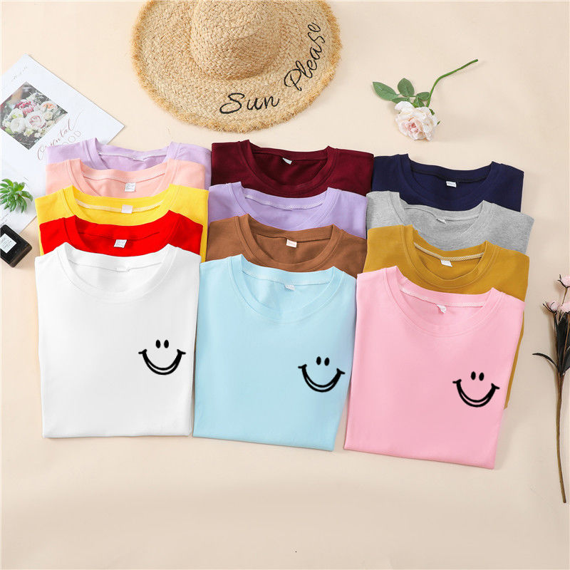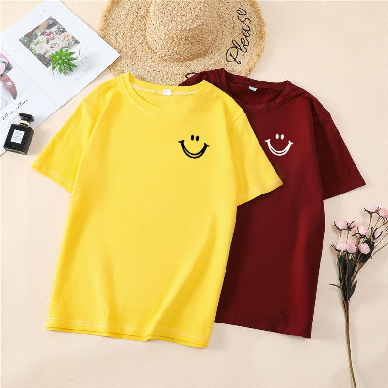 韩国T恤女士优雅舒适微笑T女士短袖卡通衬衫